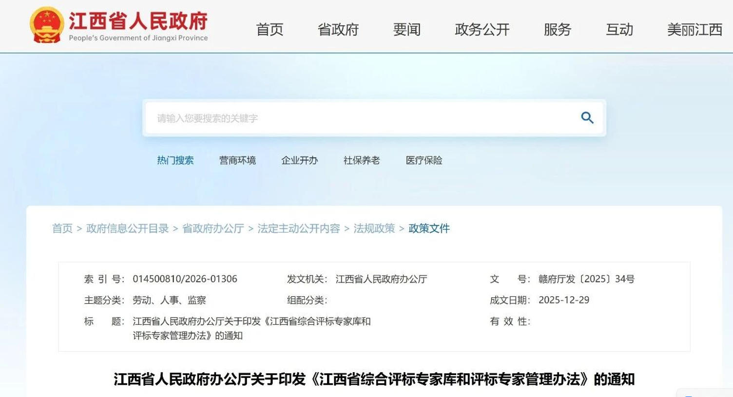 江西省政府辦公廳印發(fā)《綜合評標(biāo)專...